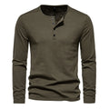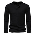 Men Long Sleeved T-shirt Cotton Slim Fit Bottoming Shirt Fitness Tops Tees Button Neck Casual Cozy Tshirt